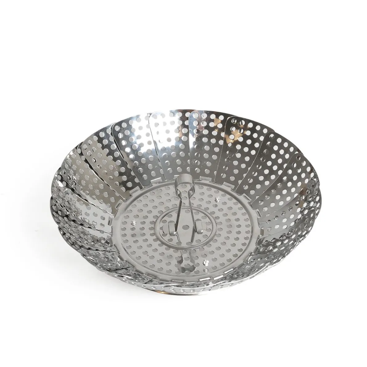 Uitklapbaar stoommandje of ‘stoombloem’ van roestvrij staal. Ideaal voor het stomen van groente, vis of zelfs vleesgerechten. Stomen is een zeer gezonde manier om etenswaren te bereiden: er wordt geen vet gebruikt, smaak en vitaminen blijven optimaal behouden. Plaats het stoommandje in een laagje zacht kokend water of bouillon in een pan zodat het vocht de bodem net niet raakt. Past in alle pannen met een Ø groter dan 14 cm, het mandje kan tot maximaal 23 cm worden uitgeklapt. Geschikt voor de afwasmachine.