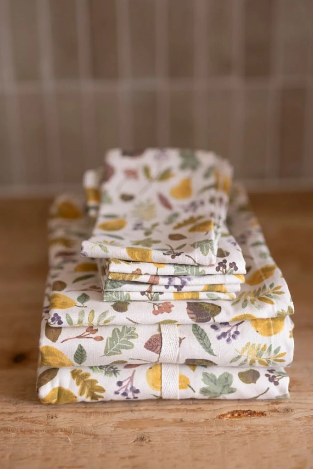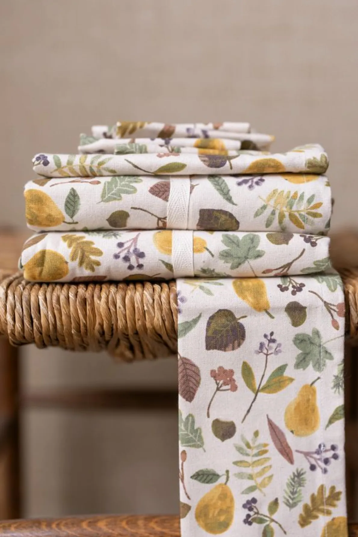 Haal de herfst in huis en maak je gedekte tafel extra sfeervol met dit tafelkleed bedrukt met peren en blaadjes in warme en natuurlijke kleuren. Leuk om te gebruiken voor een gezellig aangeklede brunch of diner! Prachtig in combinatie met de bijpassende servetten en/of lopers. Dit tafelkleed is geschikt voor een ronde of vierkante tafel voor ca. 4 personen. Een tafelkleed komt het mooist tot zijn recht als het 20 à 30 cm overhangt. Het tafelkleed is gemaakt van GOTS gecertificeerd biologisch katoen. GOTS is een internationale standaard voor biologisch katoen en geeft aan dat ons bio-katoen op een verantwoorde manier wordt geteeld en verwerkt met respect voor mens en natuur.Let op: katoen krimpt altijd na het wassen (max 5-8% ná het strijken)Tip: onze tafelkleden zijn ook mooi om ongestreken op tafel te leggen. Wanneer je ze netjes op de waslijn hebt opgehangen, kunnen ze zo op tafel. Houd er dan wel rekening mee dat de krimp wat groter zal zijn. Ongeveer 10%. Let hierop bij de aanschaf van het tafelkleed.