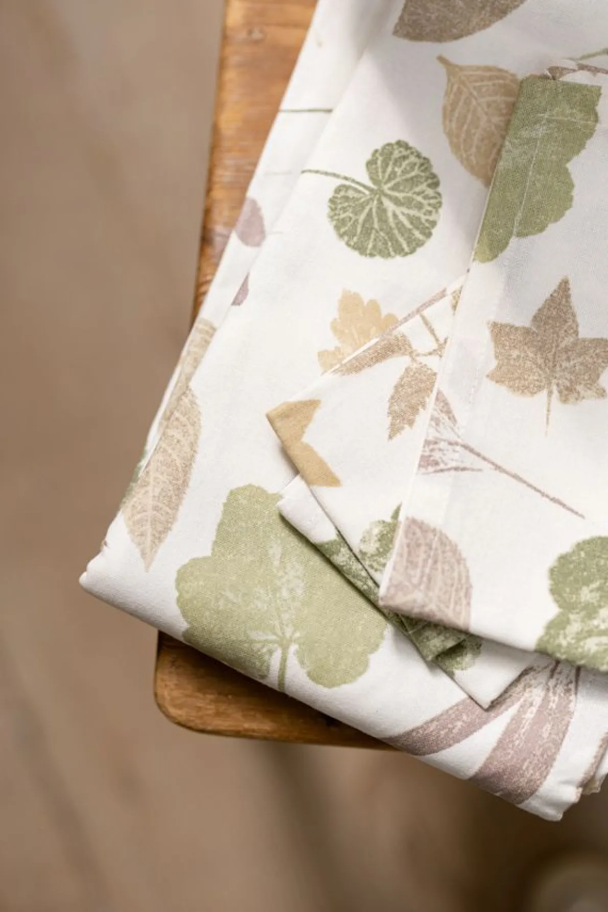 Sfeervol tafelkleed om je tafel extra gastvrij te dekken. Het tafelkleed is bedrukt met verschillende ‘gestempelde’ bladeren in mooie groentinten, en goed te combineren met ons andere tafeltextiel zoals servetten en/of placemats. Dit tafelkleed is geschikt voor een rechthoekige tafel voor 6 tot 8 personen. Tip: Een tafelkleed komt het mooiste tot zijn recht als het 20 à 30 cm overhangt.Het tafelkleed is gemaakt van GOTS gecertificeerd biologisch katoen. GOTS is een internationale standaard voor biologisch katoen en geeft aan dat ons bio-katoen op een verantwoorde manier wordt geteeld en verwerkt met respect voor mens en natuur.