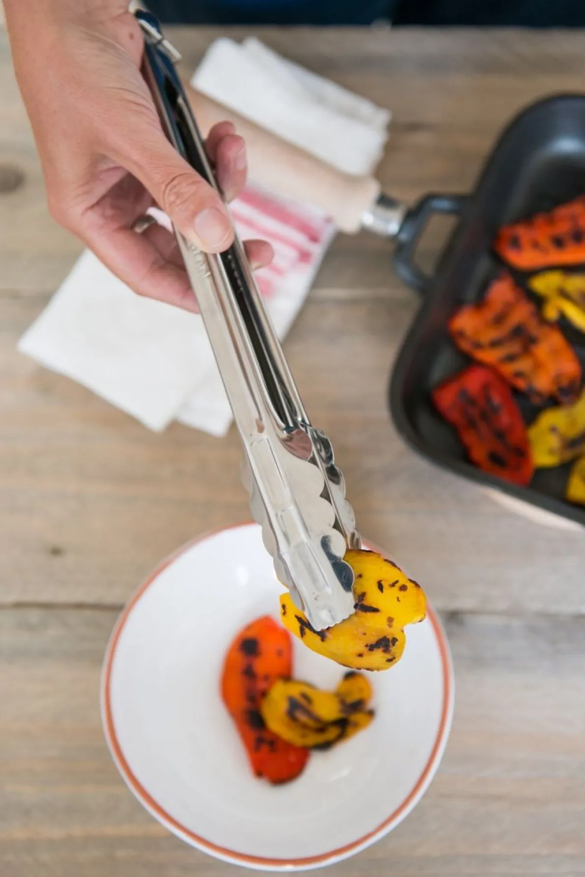 Scharnierende, geschulpte tang voor een stevige grip. Onmisbaar om tijdens het koken of bakken, vlees, vis of groenten te keren, uit kookvocht of olie te nemen etc. Met name erg handig bij bereidingen in de wok. Geschikt voor de afwasmachine. Roestvrij staal, lengte 30 cm.
