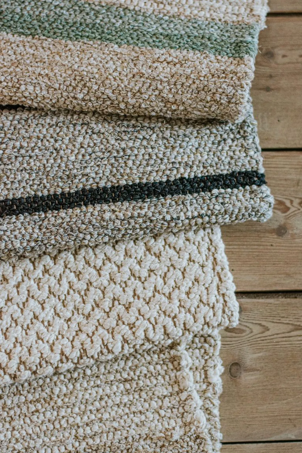 Onze vloerkleden zijn gemaakt in Portugal in een streek met veel textielfabrieken. Van de katoen die daarvan overblijft, maakt onze leverancier mooie kleden. Ze voelen heerlijk zacht aan – fijn voor je voeten!