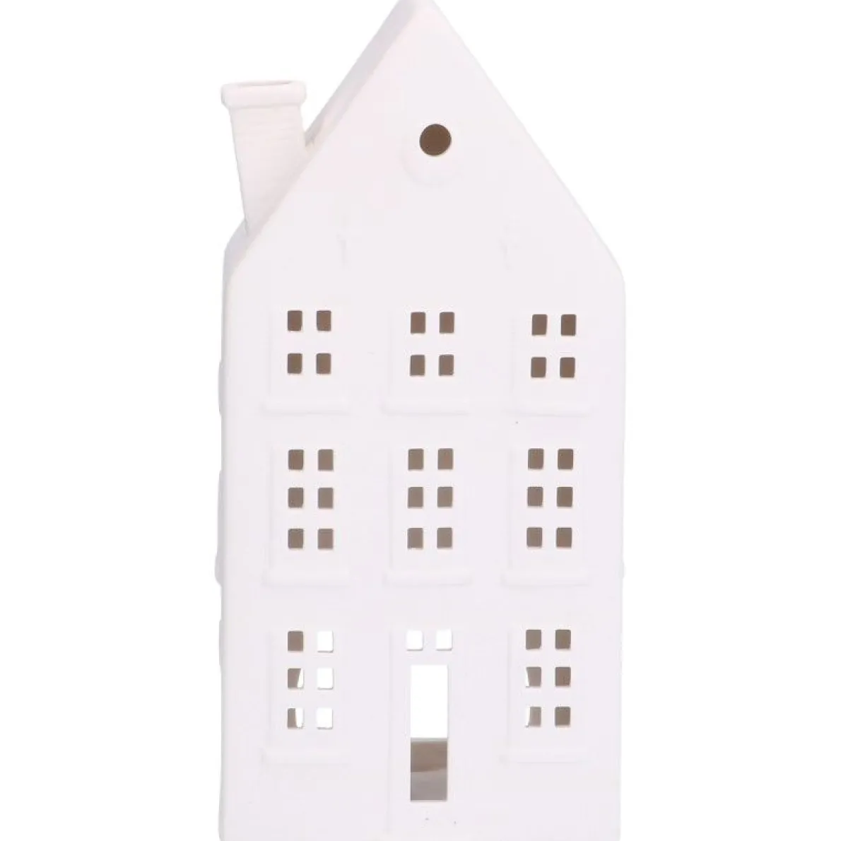 Met deze stijlvolle waxinelichthouder in de vorm van een huis met mooie trapgevel geef je je interieur extra sfeer tijdens de donkere (feest)dagen. Het huisje is gemaakt van wit porselein met een matte finish. Warm en sereen, prachtig en puur Kerst in huis en op tafel!