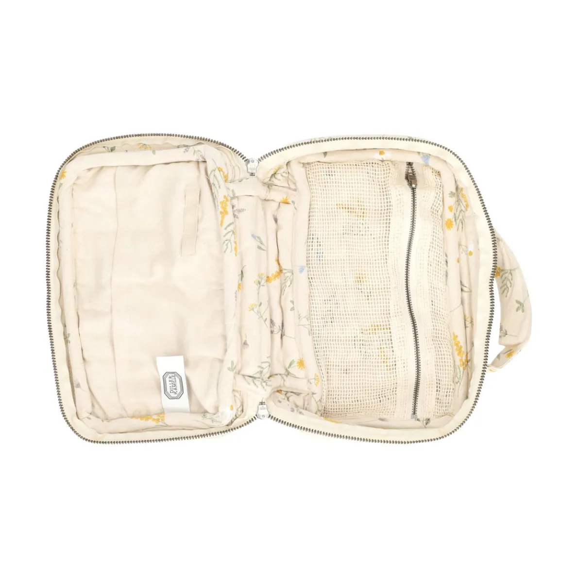 In deze mooie zachte toilettas bedrukt met mimosa en andere bloemen kun je al je favoriete toiletspulletjes kwijt. Dankzij het handige en ruime formaat is hij makkelijk mee te nemen in je tas of koffer. Ideaal om mee op reis te nemen. De toilettas is van GOTS bio-katoen en met de handgemaakt in India. GOTS is een internationale standaard voor biologisch textiel en geeft aan dat ons bio-katoen op een verantwoorde manier wordt geteeld en verwerkt met respect voor mens en natuur.De toilettas heeft een stevige metalen YKK rits. YKK is een Japans ritsen- en fourniturenbedrijf dat bekend staat om hun kwalitatieve ritsen. Ze zijn veel sterker dan plastic ritsen en gaan dus langer mee.