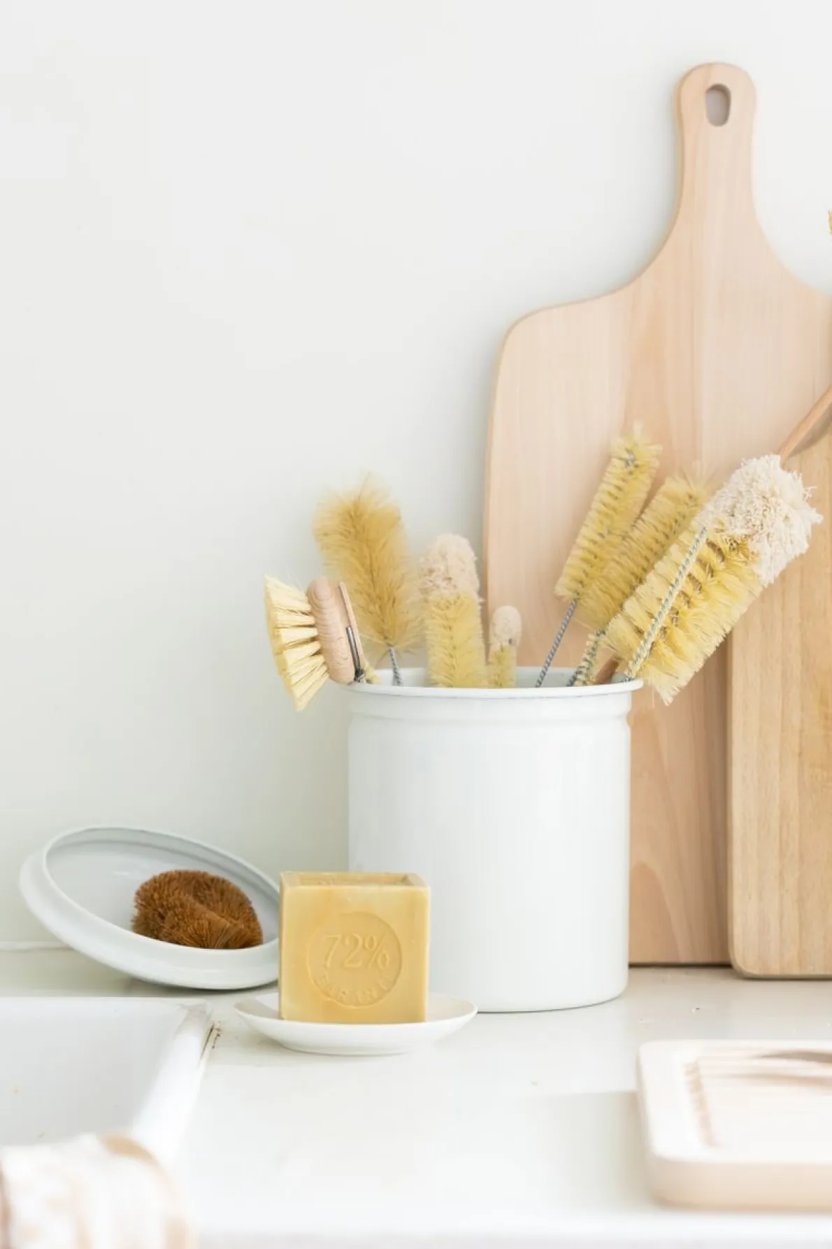 Smalle tuitenrager van gegalvaniseerd metaaldraad en gemaakt van tampico, een bladvezel afkomstig van de agaveplant. Door het ronde uiteinde, bekleed met katoen, erg handig om niet alleen de hals, maar ook de bodem van smalle vaasjes en flesjes schoon te maken.