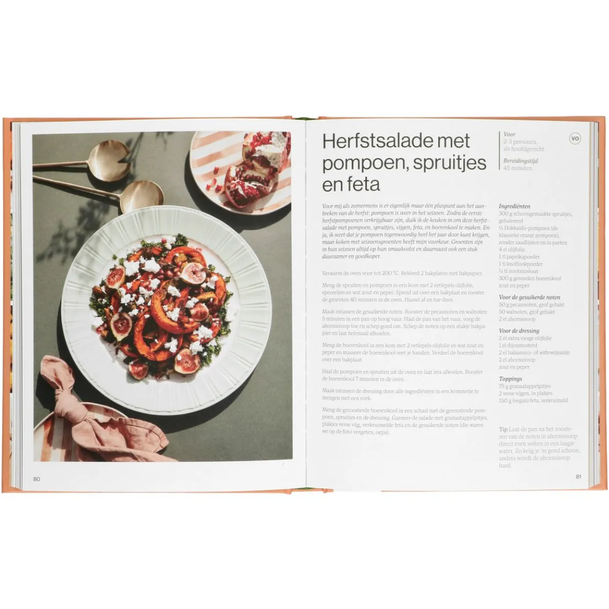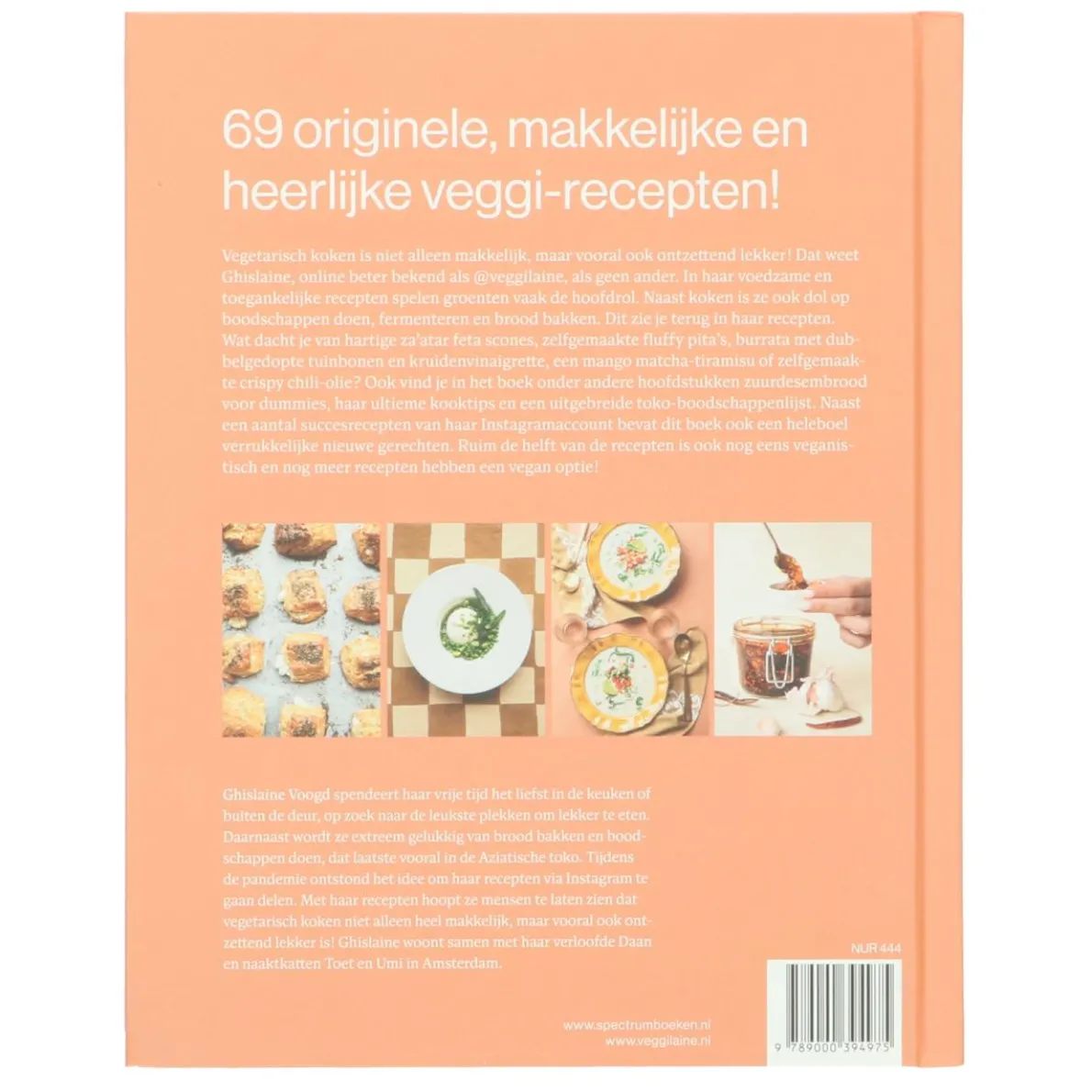 Vegetarisch koken is niet alleen makkelijk, maar vooral ook ontzettend lekker! Dat weet Ghislaine, online beter bekend als @veggilaine, als geen ander. In haar voedzame en toegankelijke recepten spelen groenten vaak de hoofdrol. Naast koken is ze ook dol op boodschappen doen, fermenteren en brood bakken. Dit zie je terug in haar recepten. Wat dacht je van hartige za’atar feta scones, zelfgemaakte fluffy pita’s, burrata met dubbelgedopte tuinbonen en kruidenvinaigrette, een mango matcha-tiramisu of zelfgemaakte crispy chili-olie? Ook vind je in het boek onder andere hoofdstukken zuurdesembrood voor dummies, haar ultieme kooktips en een uitgebreide toko-boodschappenlijst. Naast een aantal succesrecepten van haar Instagramaccount bevat dit boek ook een heleboel verrukkelijke nieuwe gerechten. Ruim de helft van de recepten is ook nog eens veganistisch en nog meer recepten hebben een vegan optie!