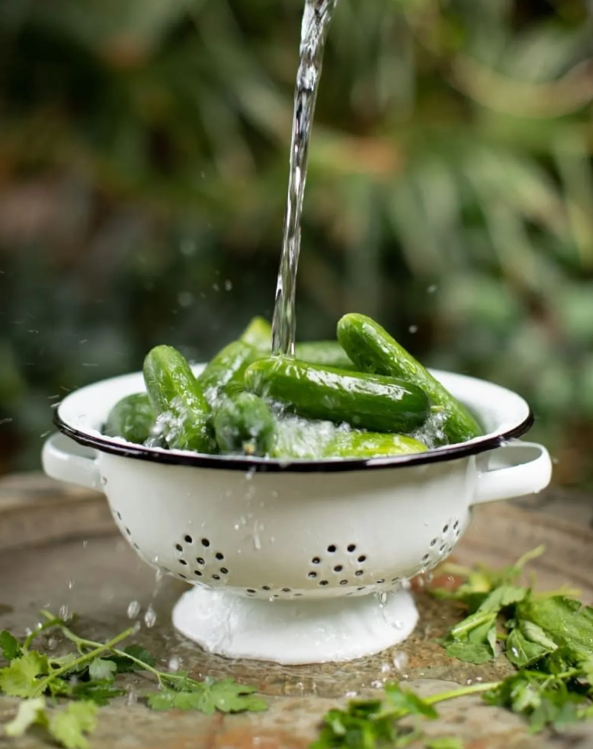Geef een nostalgische tint aan je keuken met artikelen van emaille. Dit witte vergiet met zwarte rand bijvoorbeeld. Het vergiet heeft twee handvatten en een voet, waardoor datgene wat in het vergiet ligt niet in aanraking komt met de ondergrond en goed kan uitlekken.