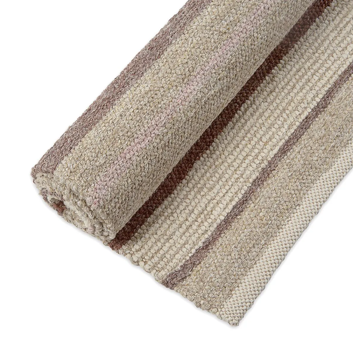 Met dit lange, smalle, gestreepte vloerkleed in diverse tinten beige en roze geef je je interieur, bijvoorbeeld de hal, een warme, natuurlijke uitstraling. Ook leuk voor naast je bed.