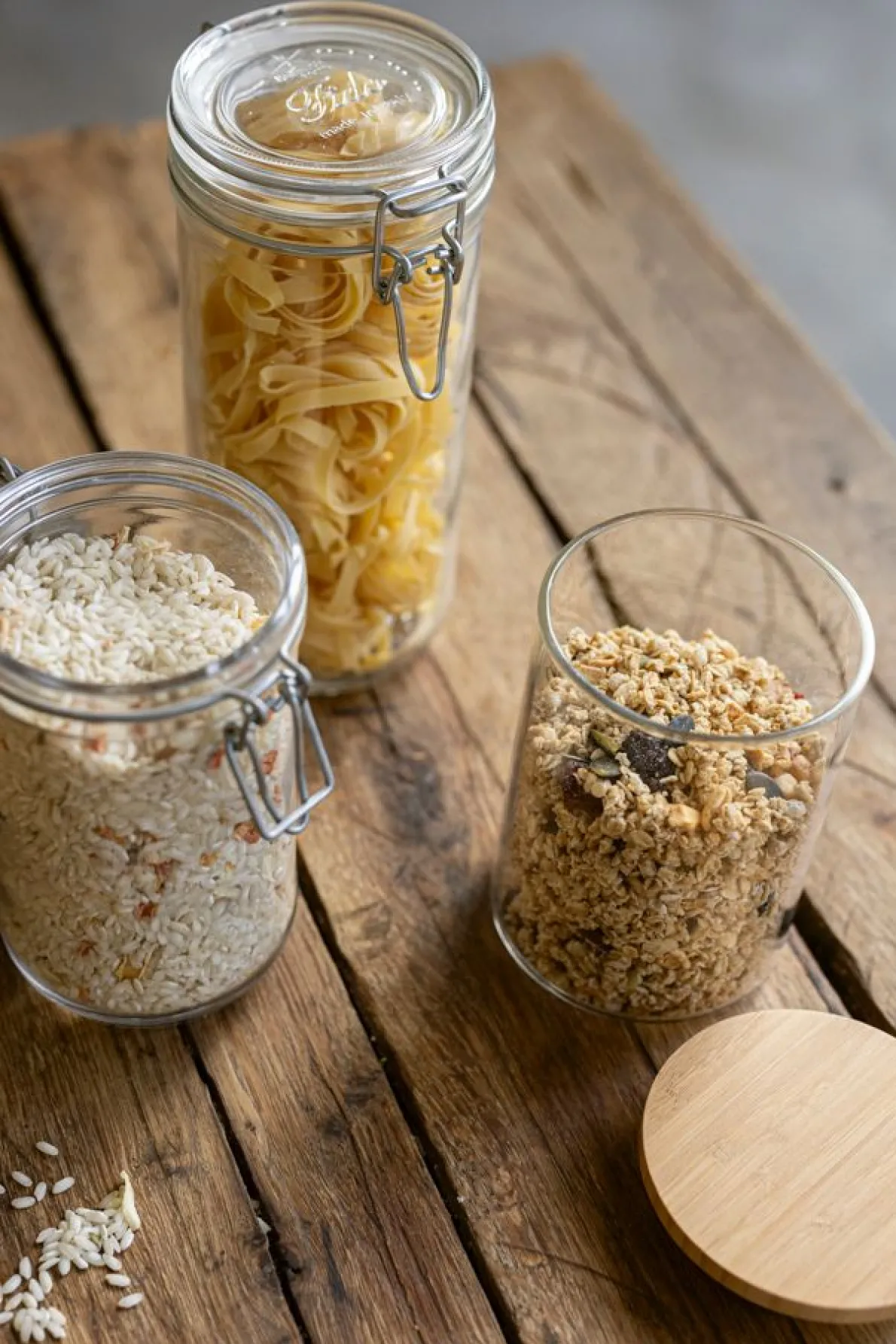 Glazen voorraadpot met bamboe deksel. Sluit luchtdicht af dankzij de doorzichtig plastic afsluitring. Om bv. snoep, pasta of rijst in te bewaren. Door de luchtdichte afsluiting blijft de inhoud vers. Geschikt voor de afwasmachine, deksel met de hand afwasssen. Hoogte 14 cm, Ø 10 cm. Inhoud 700 ml.