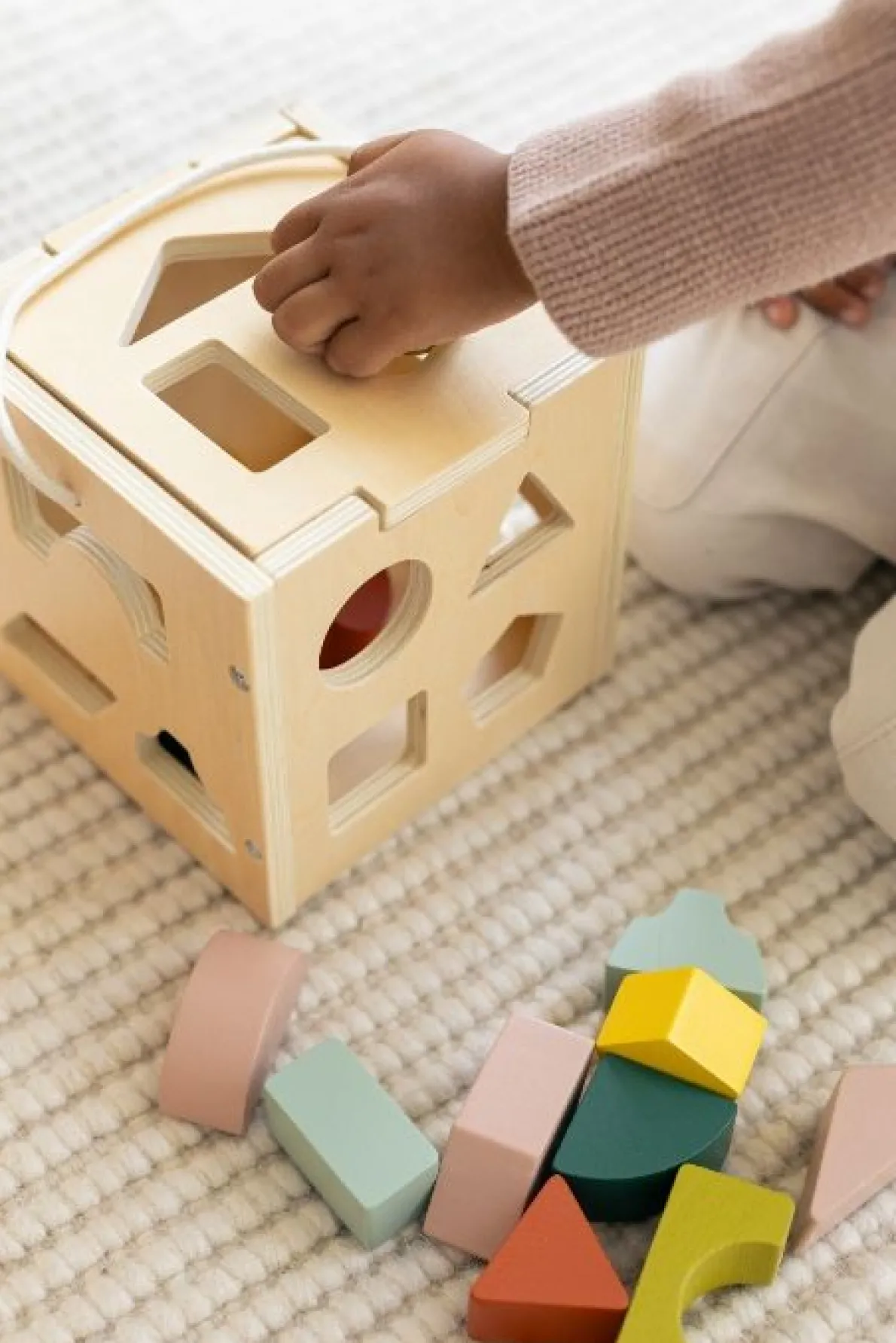 Een echte klassieker waar veel ouders mee groot zijn geworden. Onze vormenstoof heeft maar liefst 13 blokjes in verschillende kleuren en vormen. De kubus heeft rondom gaten en door de blokjes in het juiste gat te stoppen, oefenen kinderen spelenderwijs hun coördinatievaardigheden. Leuk voor kinderen vanaf 1 jaar, maar ook jongere kindjes beleven al veel plezier aan de vormenstoof.