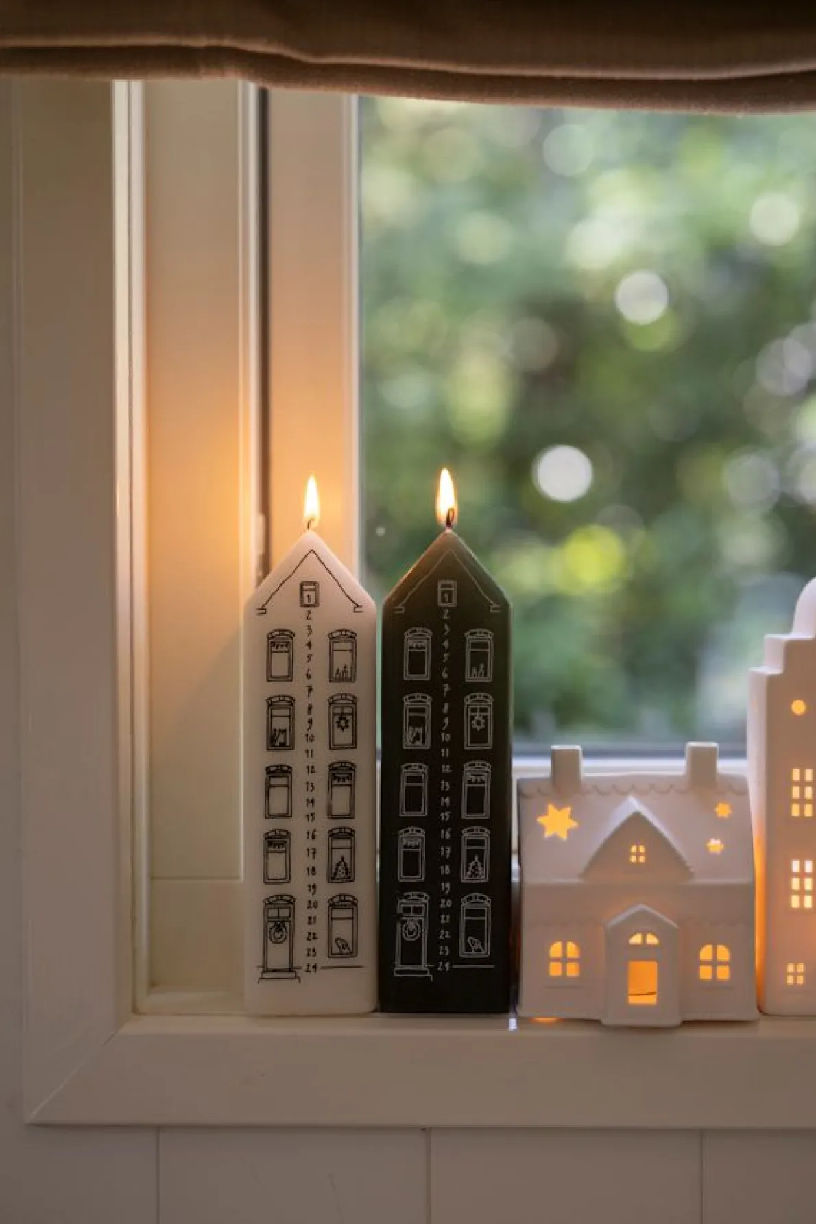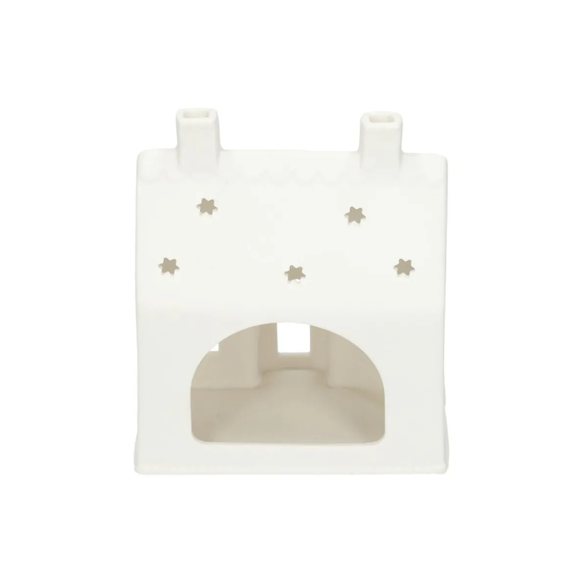 Nostalgisch koekhuisje van wit porselein – mooi in een kerstlandschapje, samen met andere huisjes, kaarsen en/of vondsten uit de natuur.