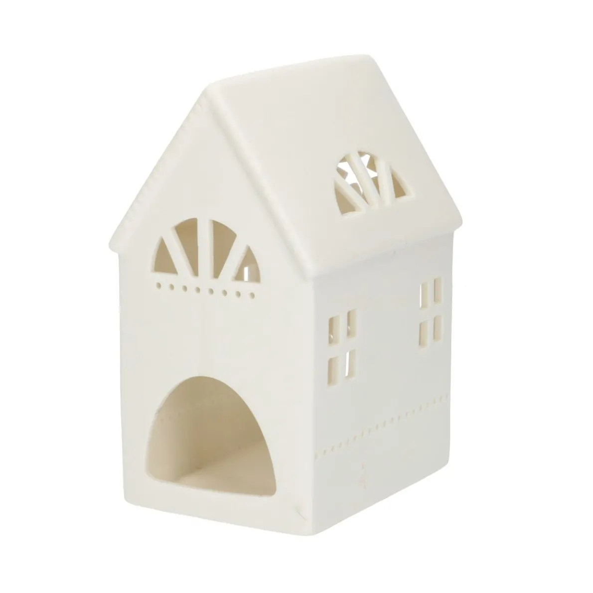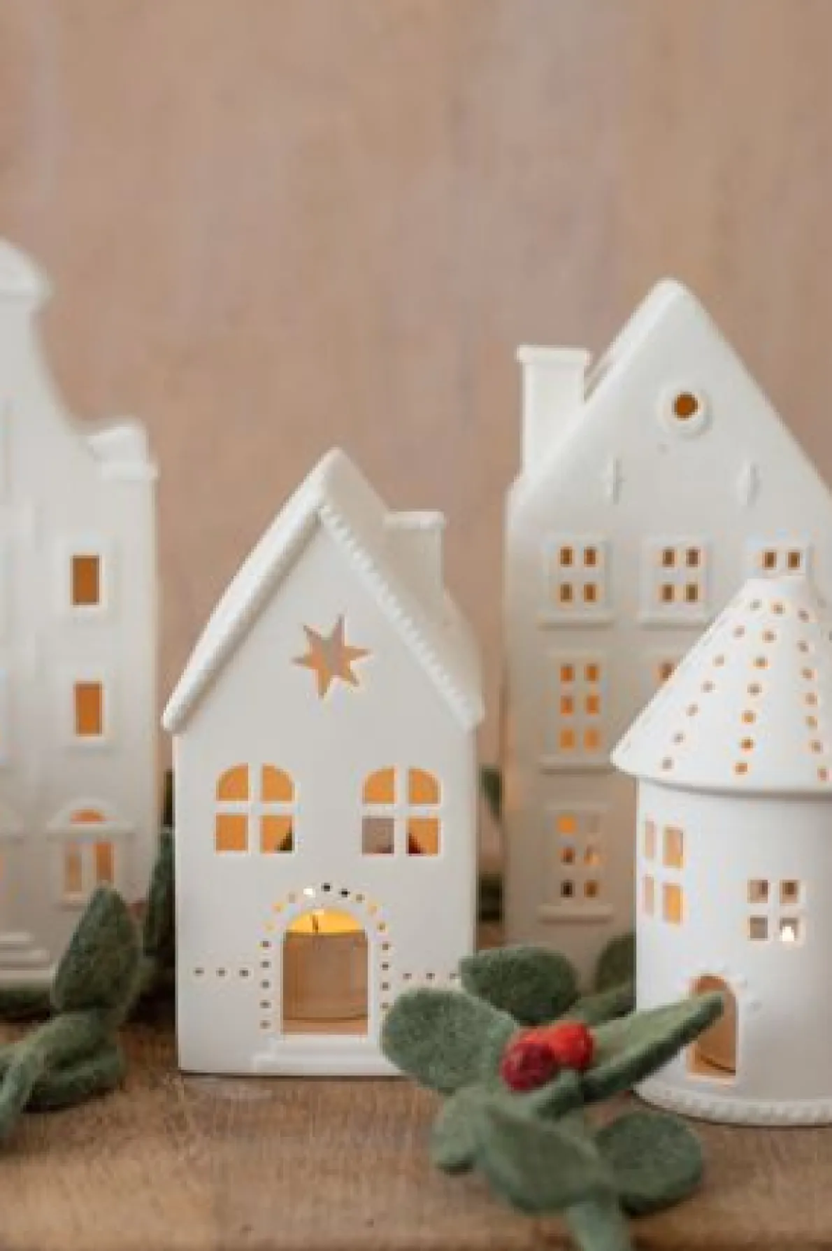 Geef je kaarsen een mooi plekje in deze waxinelichthouder in de vorm van een huisje met een ster bovenin. Het huisje is gemaakt van wit porselein met een matte finish. Voor sfeervolle avonden in de winterse dagen en rondom Kerst!