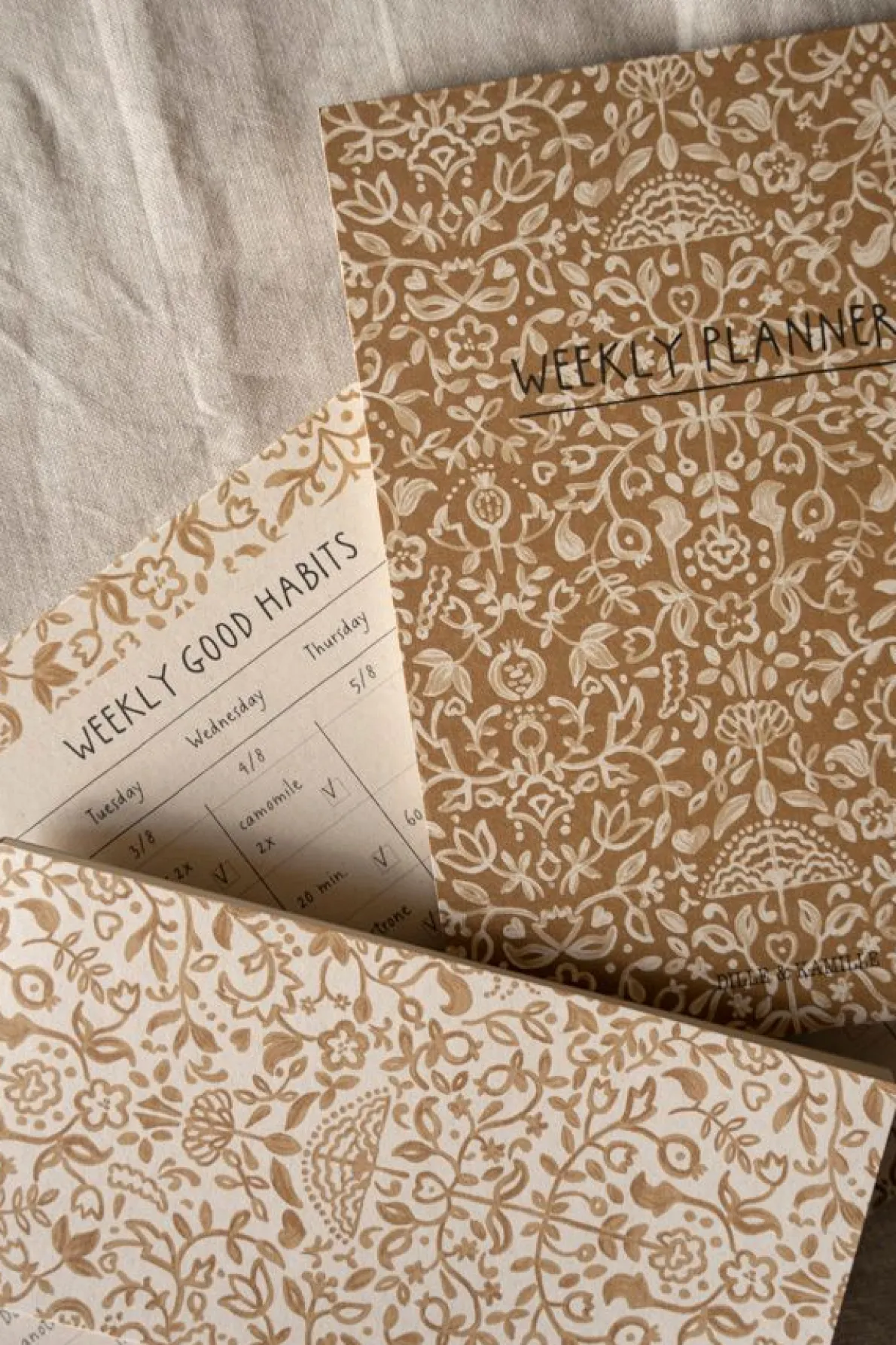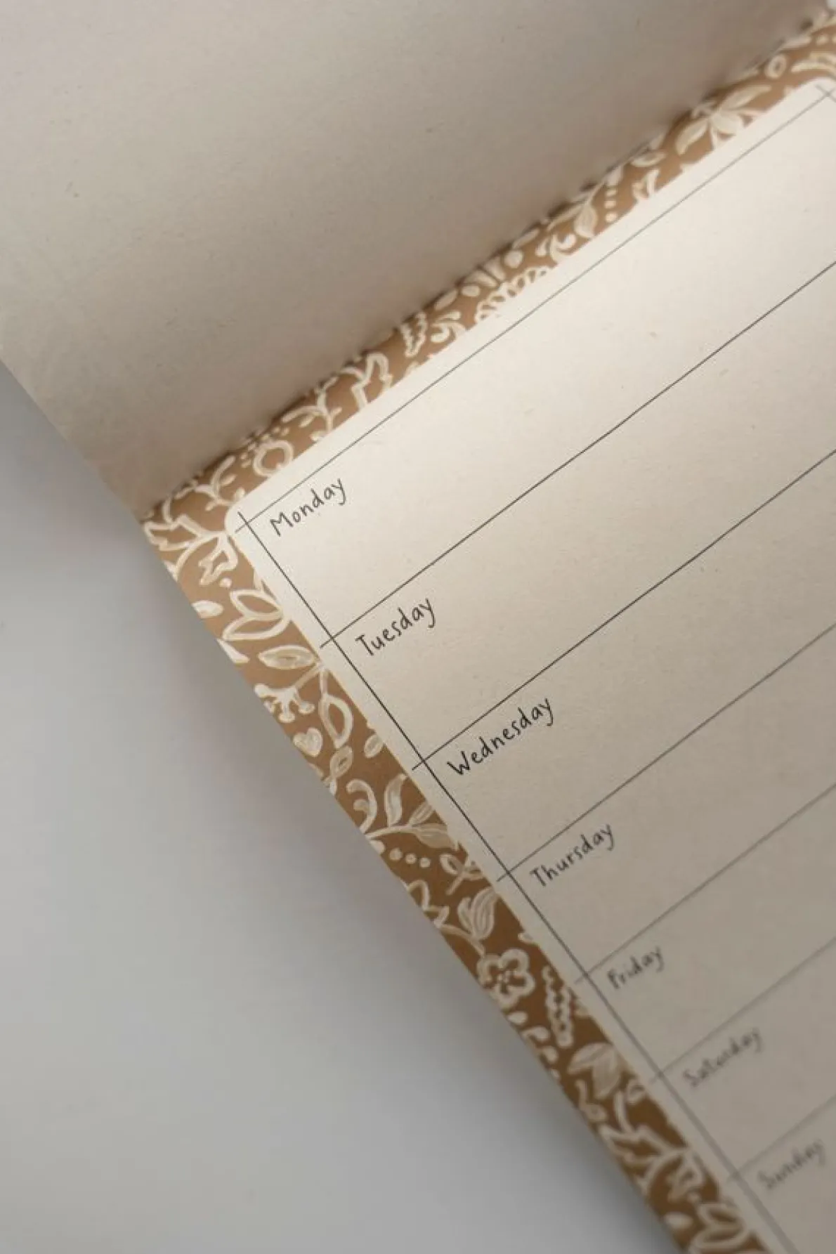Duizelt het je soms van alle dingen die je moet doen en vooral niet mag vergeten? Noteer alle afspraken, klusjes etc. op deze weekplanner in A4-formaat, dat geeft veel rust in je hoofd. Op elke pagina van de planner staat een week. Het papier voor deze planner is gemaakt van plantaardig oogstafval, er zijn dus geen bomen voor gekapt. Normaal gesproken worden deze resten verbrand, door er papier van te maken, wordt veel CO2-uitstoot bespaard. Het papier is bedrukt met bio-inkt, zonder watergebruik of giftige uitstoot.