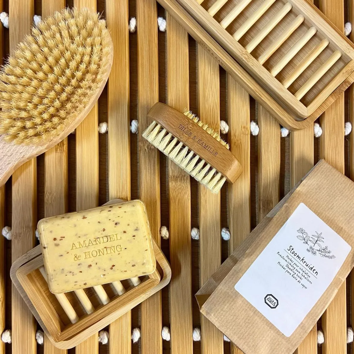 Goed om te weten: bamboe is een duurzaam materiaal, deze tropische grassoort groeit na het oogsten steeds weer aan. Bovendien is het sterk, licht van gewicht, makkelijk te reinigen en het neemt geen vocht op. Op naar een plasticvrije badkamer!